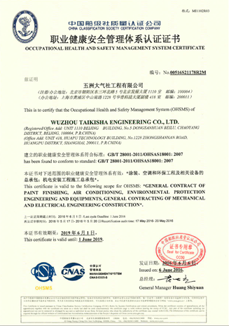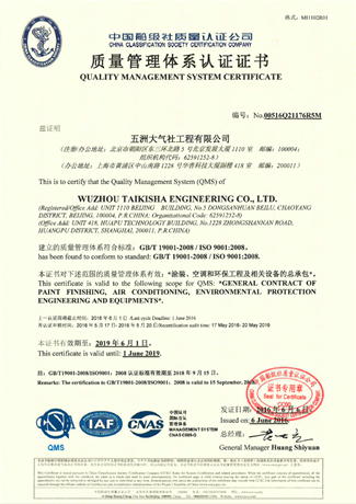 五洲大气社工程有限公司于2002年取得了ISO组织颁发的质量认证证书。 认证范围:涂装 、空调和环保工程 的设计、施工、安 装、调试和技术服务以及相关工程和设备的总承包
